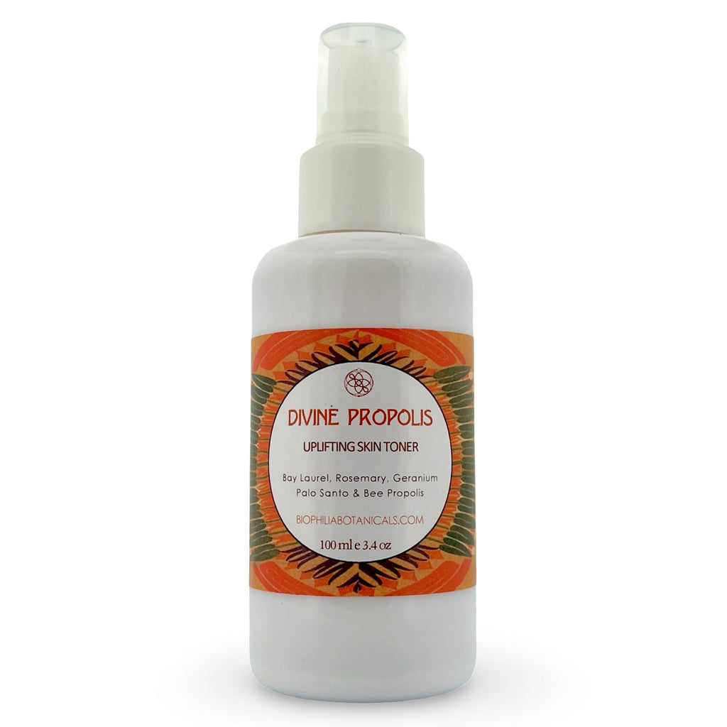Discover our range of hydrosol-distillate based aroma blends. These high end, body & facial spray blends offer a true revelation of the senses without the artificial ingredients used in synthetic fragrances and classic alcohol-based perfumes or toners. The first blend created for the company, “Divine Propolis” was designed for the owner's father and remains a classic for men as well as women in the aroma blend line. Aroma blends are perfect as toners, supporting hydration and micro-circulation in the epidermis and can also be used as mood enhancers. All our aroma blends are unisex. Check out our best-selling blend combining a co-distillation of juniper, rose & palo-santo with subtle notes of jasmine.