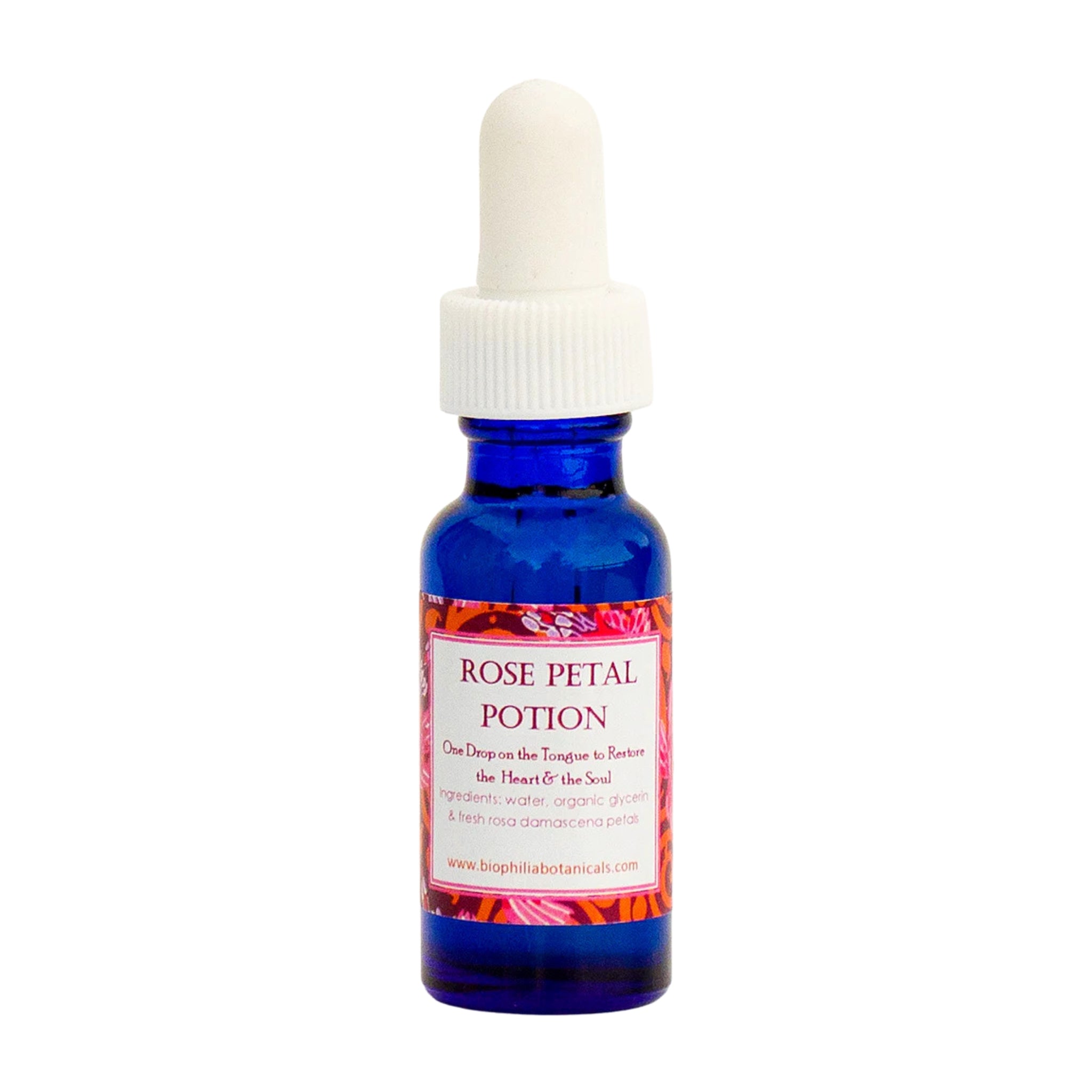 The Biophilia Rose Petal Potion is truly magical, with calming, appeasing and centering energy that brings your entire being into the radiant energy of the rose. A heart healer for all, big and small.